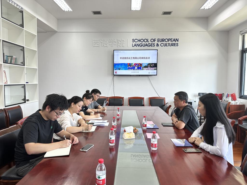 7月12日,庞氏化工有限公司总裁庞斌一行来我校调研走访、洽谈合作事宜。学院党总支副书记方盼、西班牙语系系主任甘甜、团委副书记陈相伟等热情接待并参加座谈会。双方围绕外语外贸人才培养、服务浙江建设发展等方面展开讨论,将进一步对接、构建合作发展的新平台、新机制,积极促成合作成效。