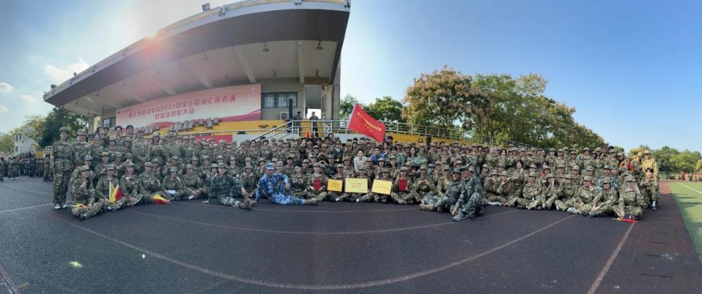 10月24日下午,2023级学生军训汇报表演暨总结表彰大会在田径场顺利举行。校党委书记宣勇,校长、党委副书记张环宙,党委副书记赵文波,副校长、党委委员李安,副校长、党委委员,组织部、统战部部长徐勇,副校长、党委委员,宣传部部长毛振华出席大会。