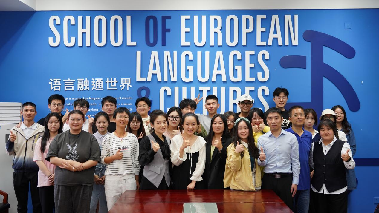 毕莹向奔赴归来的西语校友们表示热烈欢迎,与校友们分享了三点感想:想念是一种力量,想念如纽带般始终将母校与校友们紧紧联结,母校的思念和关爱将一直陪伴着校友们前行;回家是一种态度,校友们毕业后奔赴五湖四海,不论身处何处,都要记得回家、愿意回家;表白是一种传递,校友情需要传递,想念时的一个消息、相遇时的一个招呼……一个个简单的表达都可以将深厚温暖的师生情长久传递。
