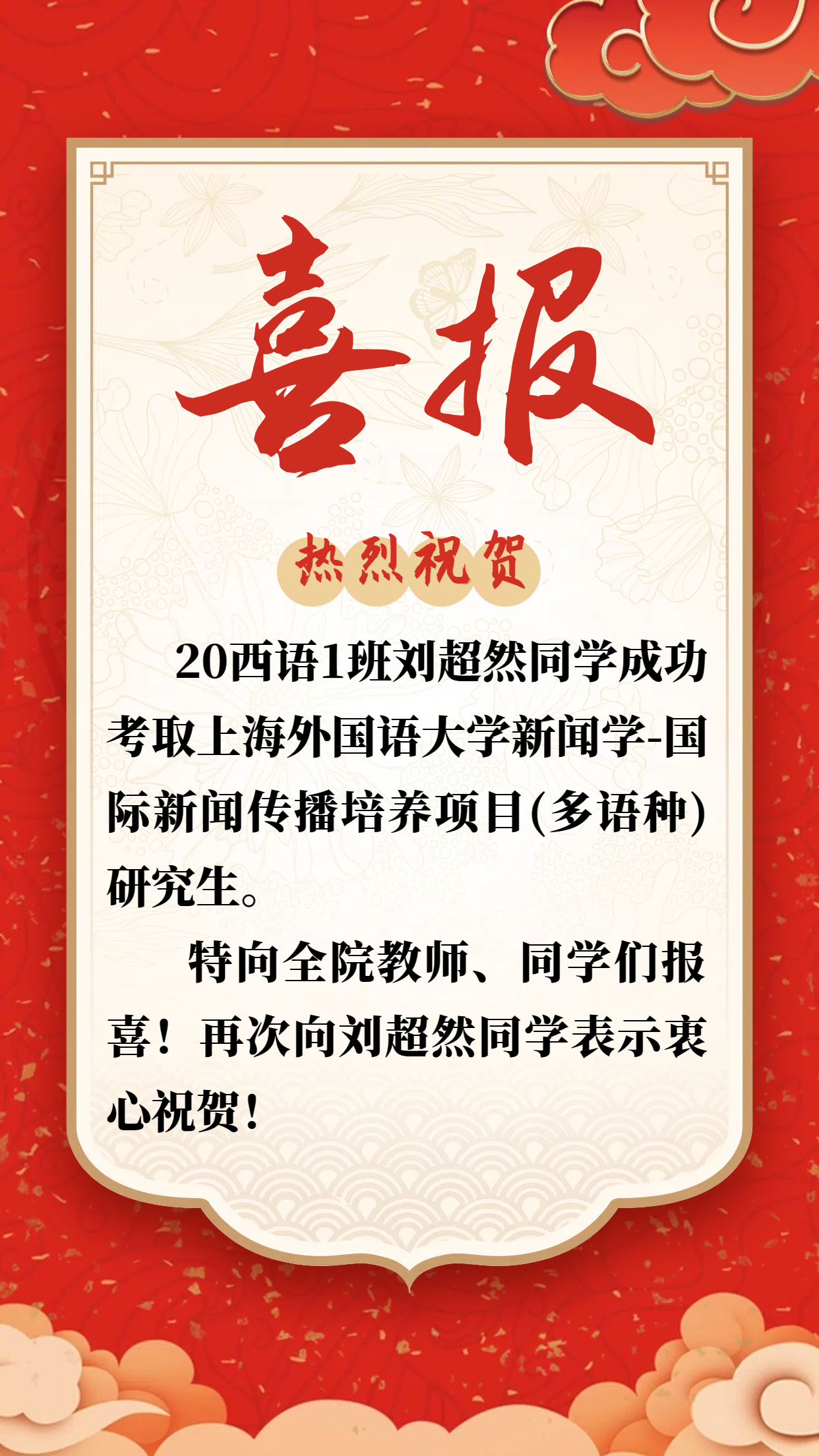 20西语1班刘超然成功考取上海外国语大学新闻学-国际新闻传播硕士研究生培养项目(多语种)(24年国内外升学第3期)
