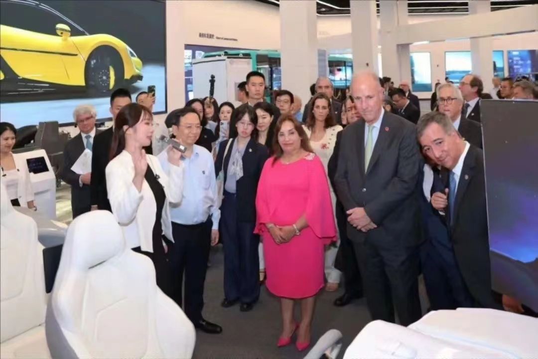 6月26日,秘鲁总统迪娜·博鲁阿尔特参访比亚迪公司,并与王传福董事长举行会谈,色漫网 20届西班牙语专业毕业生傅思凡担任本次活动的西语翻译。
