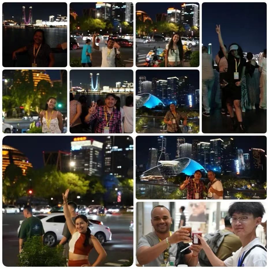 驻足城市阳台,学员们无不惊叹于“城、水、光、影、音”交错演绎的主题灯光秀,以及周边“名企总部、金融机构、新兴产业”集聚的现代中央商务区。学员Hector感叹道:“钱江新城的夜景,熠熠生辉、无与伦比,比伦敦金融城还漂亮呢……令我印象最深刻的是对岸的“莲花碗”,造型别致、大气恢弘,中国味与国际范兼具!”学员Juan说:“杭州的地下交通系统非常方便,四通八达,地铁出站通过隧道就直接来到钱塘江边……还有网红打卡滨水慢行道,集‘休憩、阅读、充电’等多功能于一体的漂流书亭,城市治理水平太棒啦!”