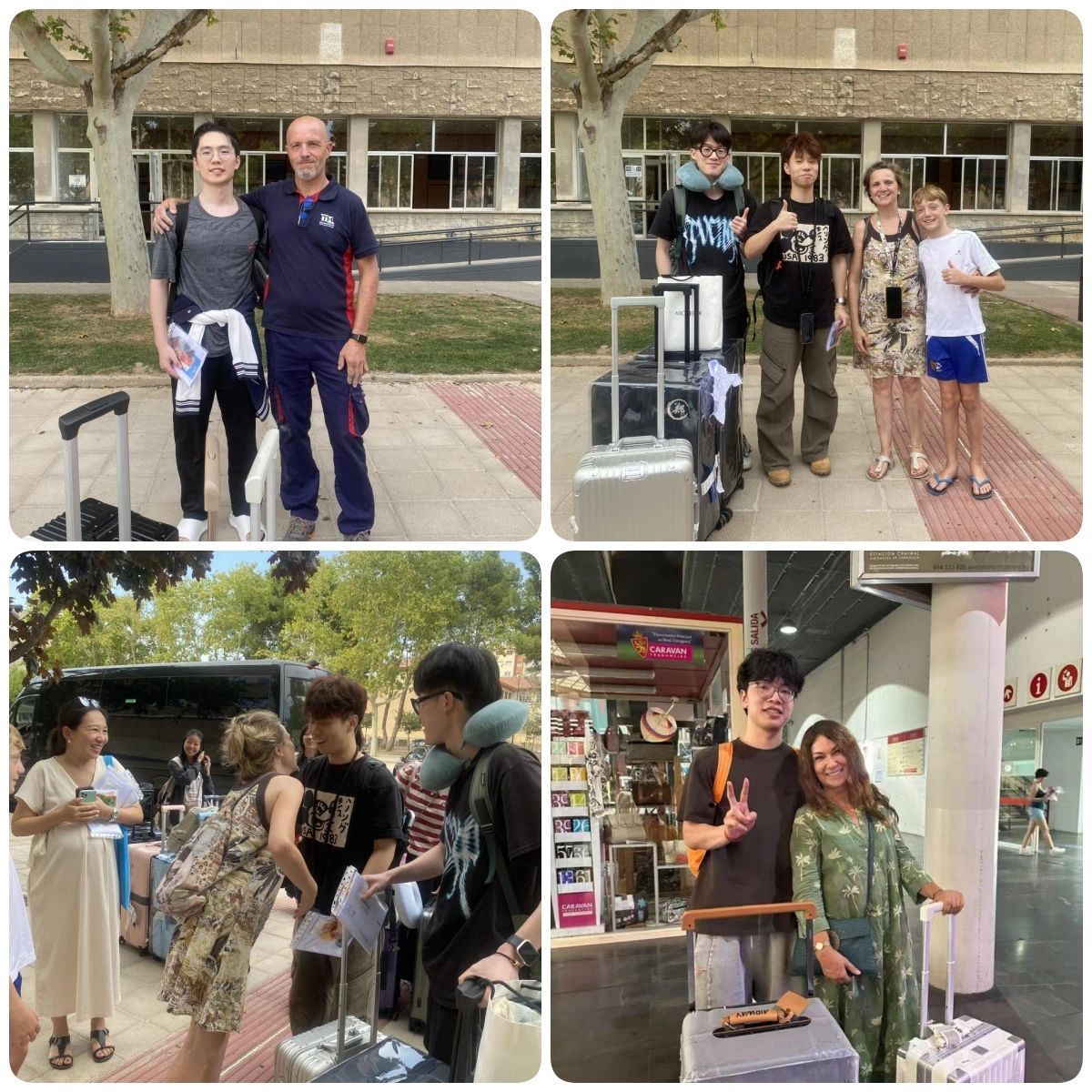 2021级西班牙语(中外合作办学)(旅游方向)专业学生陆续抵达西班牙,赴萨拉戈萨大学修读旅游学学位。西班牙寄宿家庭的“爸爸妈妈”们前往车站迎接,以西班牙式的热情迎接同学们的到来。