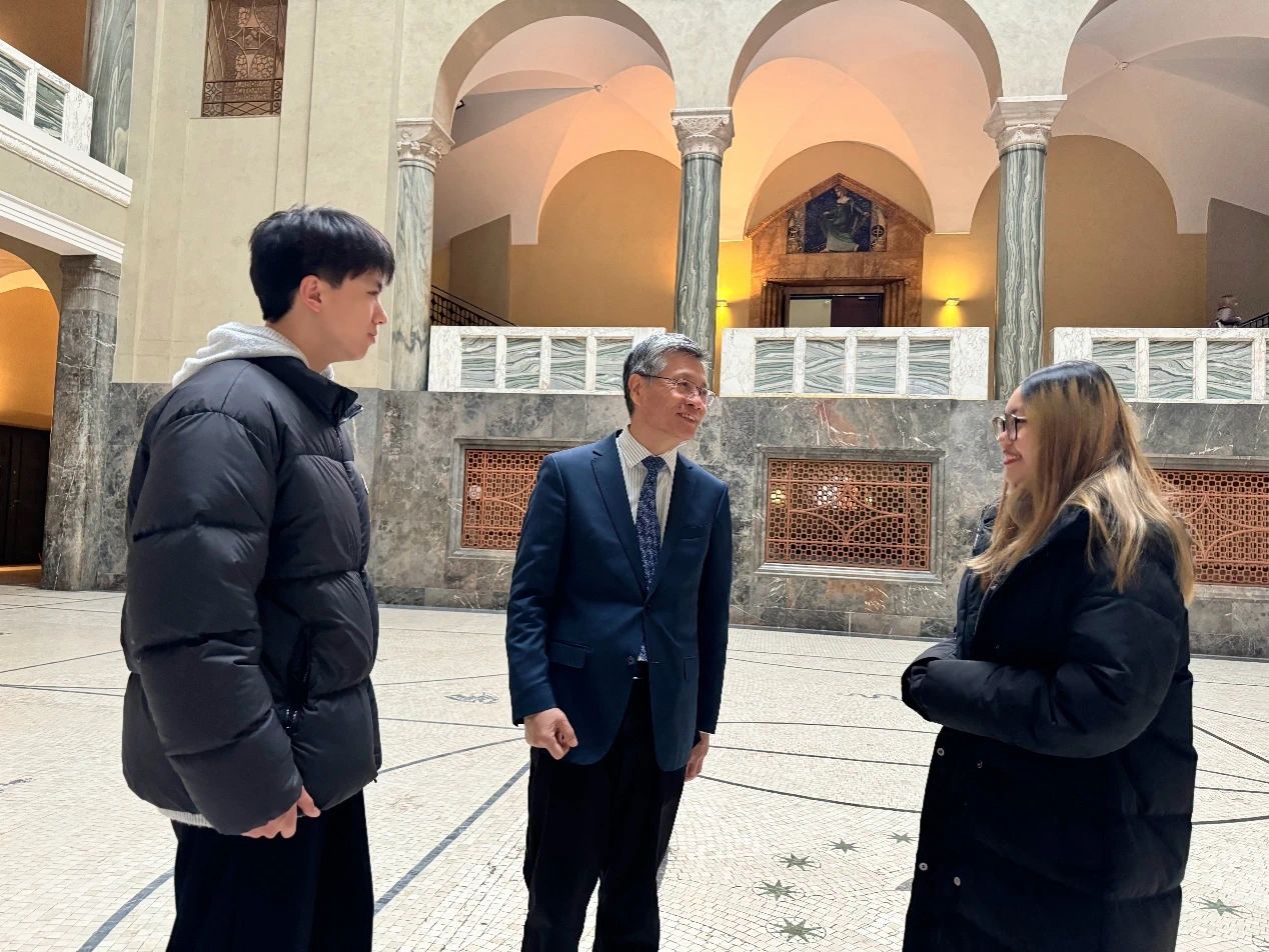 宣勇亲切询问同学们在德国的学习与生活情况,并强调,一要注意人身安全。在海外求学要学会妥善处理生活中遇到的各种突发问题。二要专注学业。要珍惜在德交流的宝贵机会,努力学习,开阔视野,为未来发展积蓄能量。三要入乡随俗。要积极融入当地社会,体验德国文化并比较中德异同,争做能担当文明互鉴和人文交流之大任的新型外语人才。