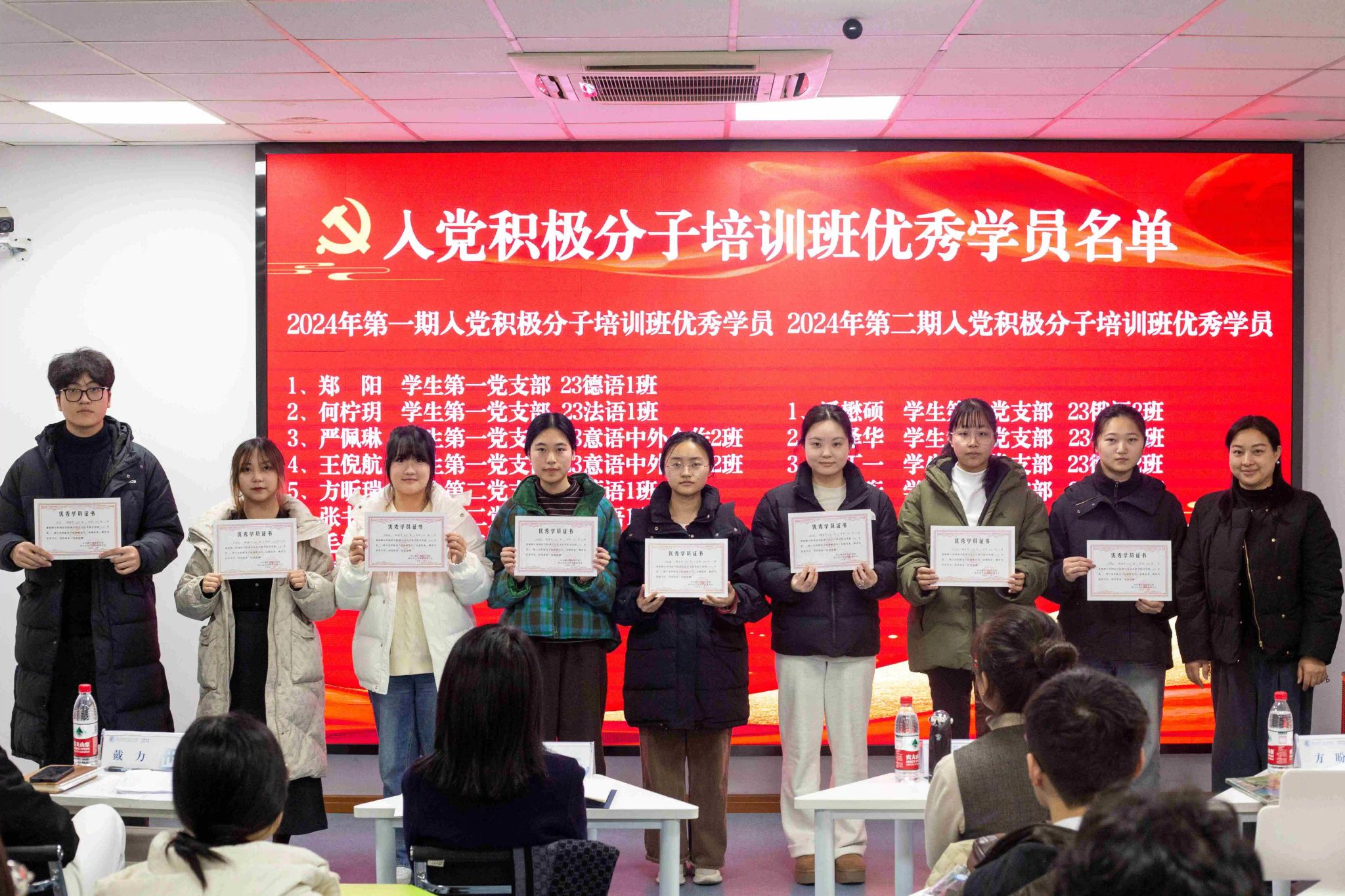 分党校建设入选学校党建工作优秀案例。戴力回顾了2024年第一期、第二期入党积极分子培训班集中理论学习、自主学习、研讨交流以及实践活动的四个模块安排,感谢每一名学员的全情投入,并表示全体学员展示了入党积极分子严守纪律、积极学习、勤于思考、积极服务社会的良好精神风貌。