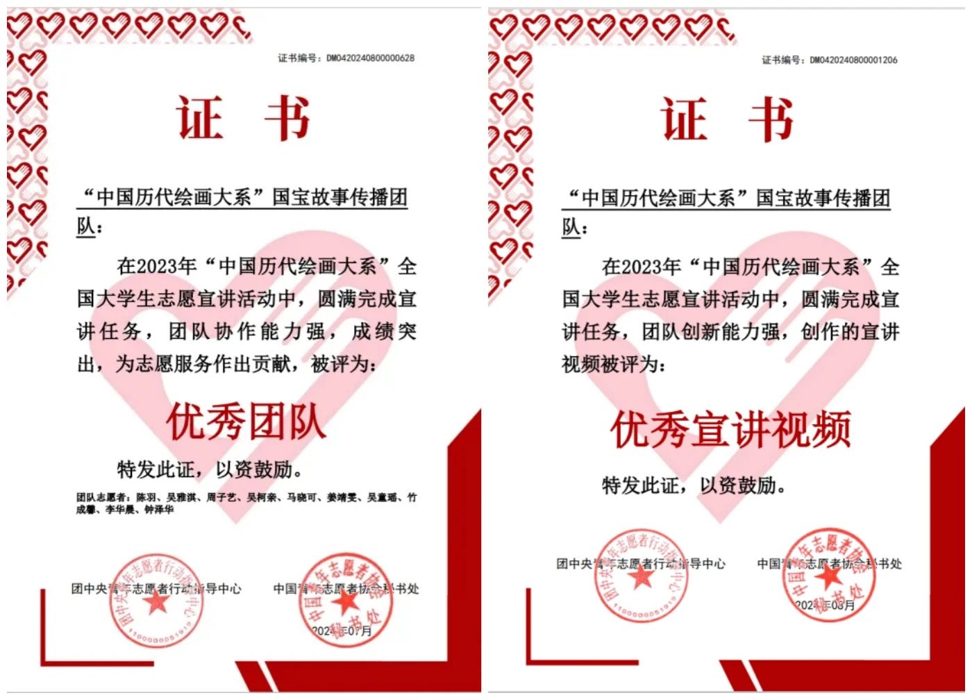 9.“中国历代绘画大系”国宝故事传播团队获团中央青年志愿者行动指导中心、中国青年志愿者协会颁发的“优秀团队”“优秀宣讲视频”称号。