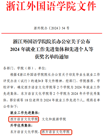 2024年,西语学院党政领导班子坚持以习近平新时代中国特色社会主义思想为指导,认真贯彻落实学校第三次党代会精神,紧紧把握浙外与北大战略合作新机遇,全力聚焦“国际传播与区域国别”,以变革促转型,以转型谋发展,依靠并团结带领全体师生员工踔厉奋发、砥砺前行,为浙外建设国际知名以服务新型国际关系为特色的外语名校贡献西语力量、展现西语担当。
