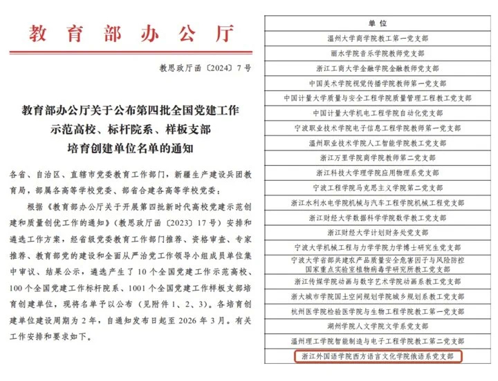 1. 俄语系党支部获第四批“全国党建工作样板支部”培育创建单位、全省高校“双带头人”教师党支部书记“强国行”专项行动团队。