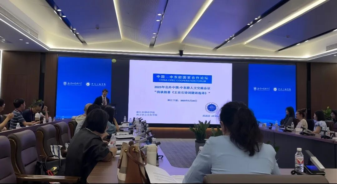 捷克语专业外教路越嘉应邀出席2025年“北外中国-中东欧人文交流会议研讨会”暨“中国-中东欧国家高校联合会文学学科建设共同体”成立大会,并作题为《浅谈拙著<王安石诗词捷语选译>》报告。