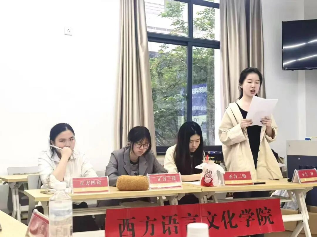 23意语1班曹珏婷、23意语中外合作2班王思微、24俄语2班李苡然、24意语1班翁若丹组成的辩论队脱颖而出,荣获季军!