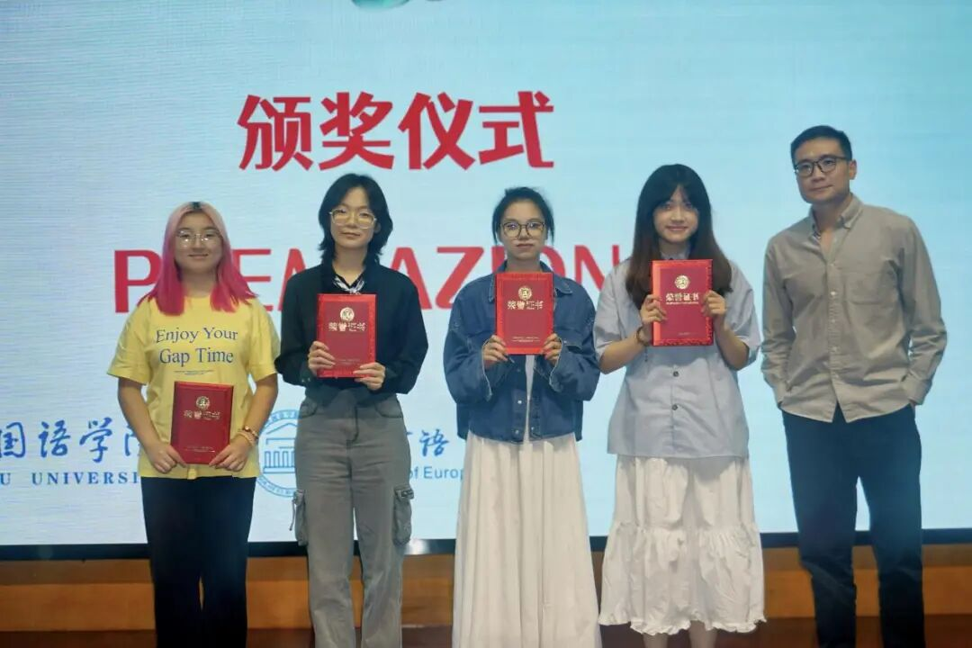 22意语1班龙文星获一等奖,23意语1班匡媛媛、23意语中外2班顾禾玢获二等奖,22意语1班沈若桐、24意语1班查原犊获三等奖。