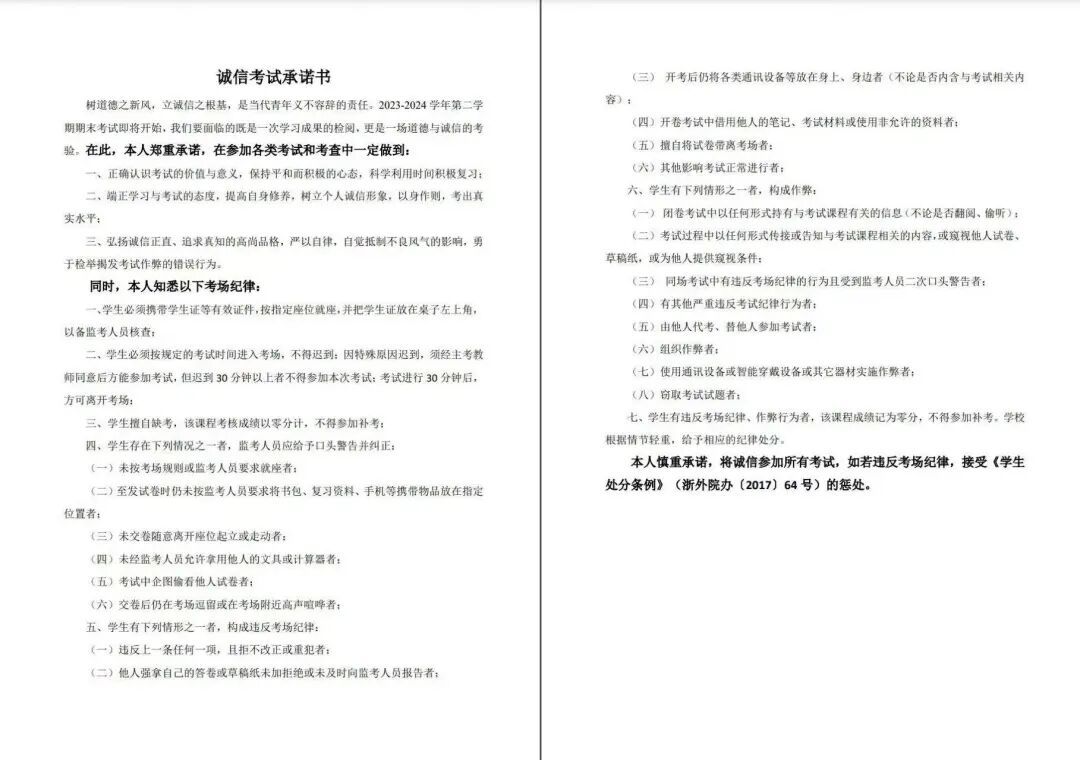 四、诚信考试承诺书