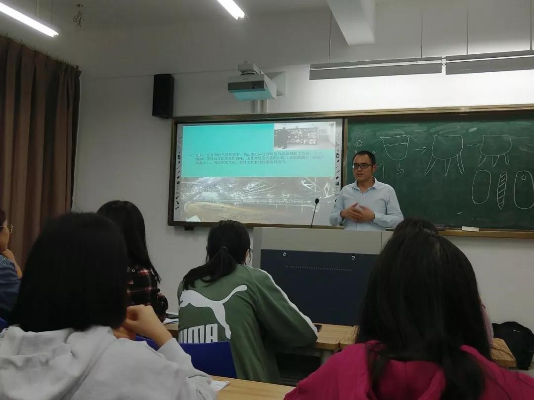 夏主任以气候与地理优势为切入点,简单讲解了良渚文化的形成与发展,从而引出其在新石器晚期文明化进程中的重要地位。此外,夏主任还介绍了与之相关的一系列文化,通过比较分析,使在场的同学们加深了对此的理解。随后,夏主任还依托生动直观的图片素材与丰富的知识储备,从“物质成就”角度出发,介绍了相关的典型器物、建筑成就等。夏主任还特别指出,一些器物的区分痕迹显示当时的良渚文化已经形成了一定的等级性。其中,成组玉礼器的出现维护了社会秩序的稳定,是良渚作为成熟文明的标志。