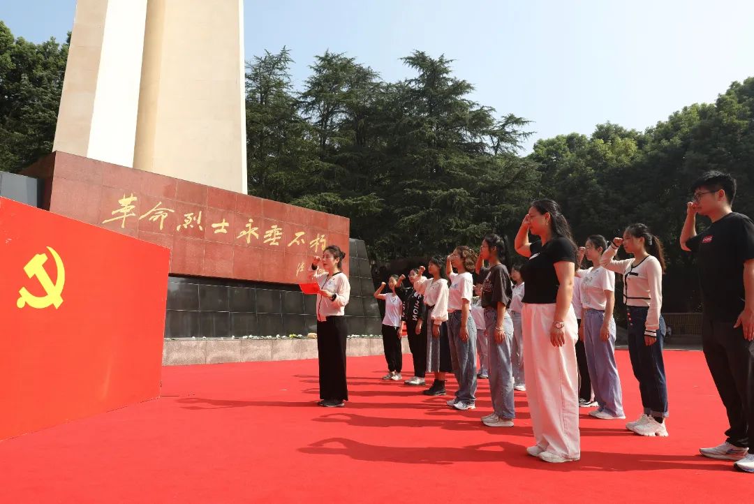 学院党总支书记毕莹带领师生党员在纪念碑前重温入党誓词,缅怀革命先烈的爱国精神和丰功伟绩。