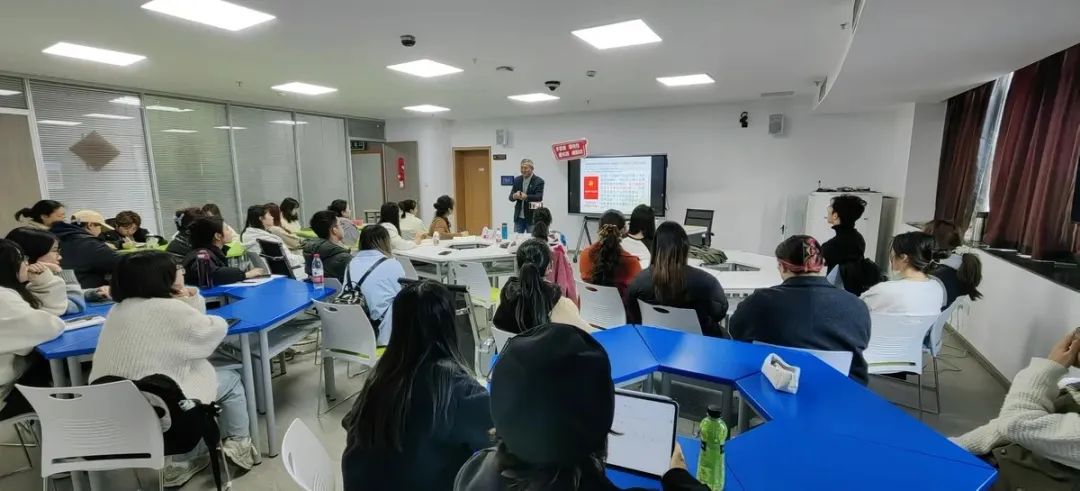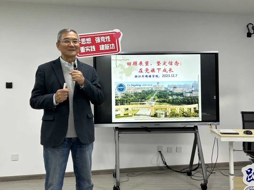 12月7日下午,我校特聘教授陆经生以“回顾展望,坚定信念,在党旗下成长”为主题在涵养楼A502讲授了一堂生动的党课。学院党支总书记、分党校校长毕莹出席并作开班仪式讲话,德西语系党支部书记熊乙婷、学院专职组织员杜颖以及培训班学员参加活动。