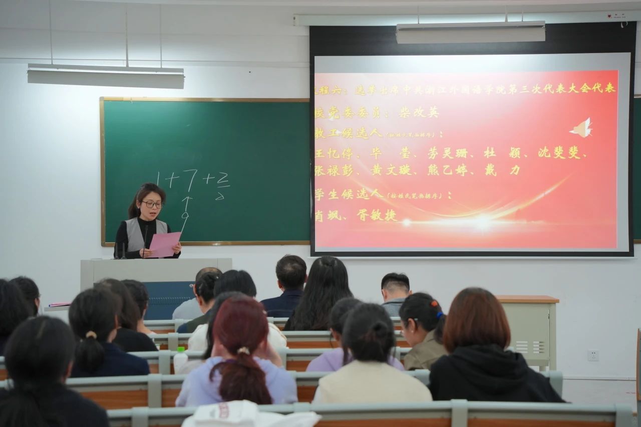 3月25日中午,西语学院党总支在融D302召开党员大会,选举学校第三次党代会代表。学院全体党员参加。大会由学院党总支书记毕莹主持。