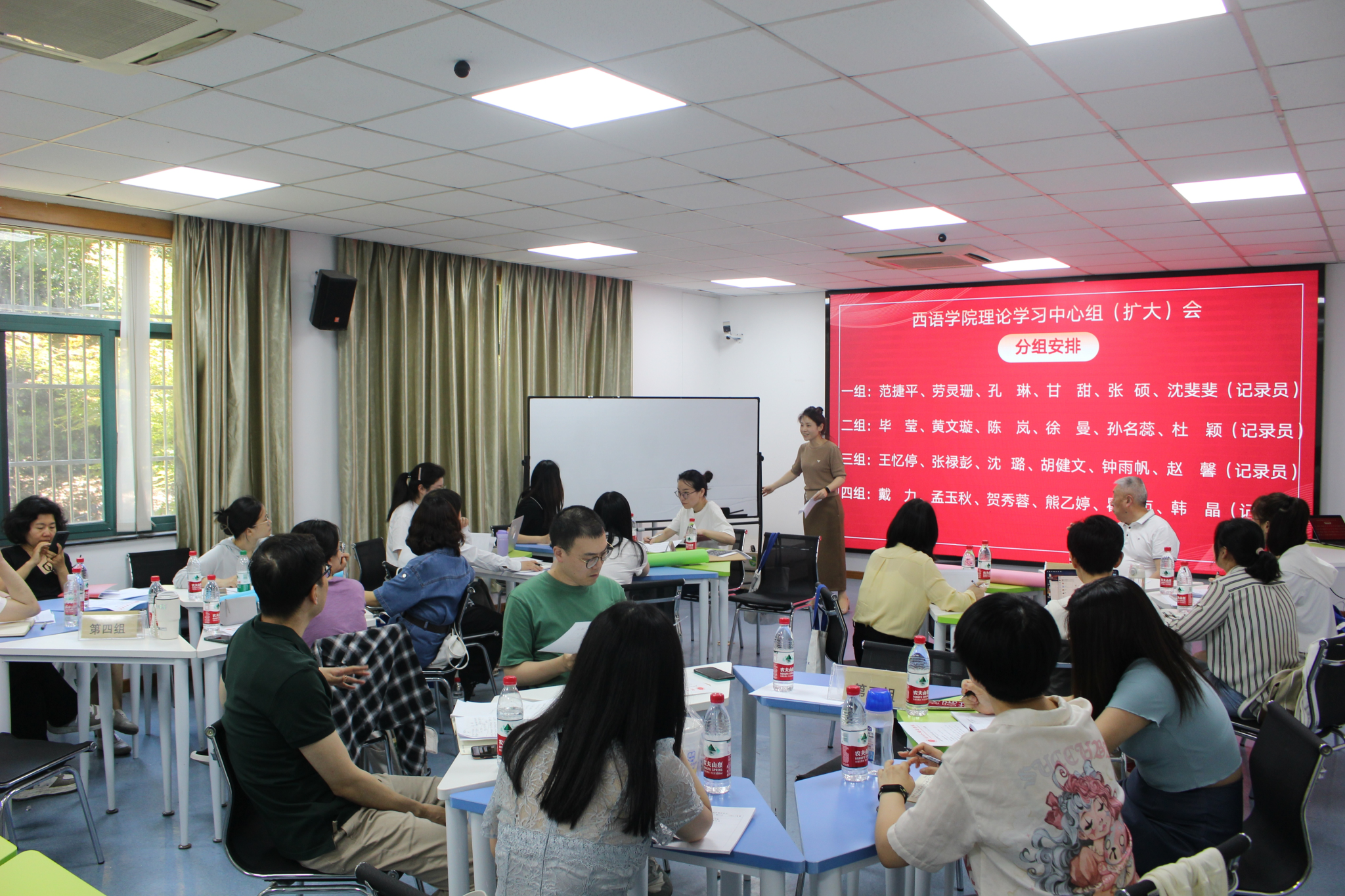 毕莹提到,为学习好、宣传好、贯彻好学校第三次党代会精神,凝聚全院党员干部、师生员工的智慧和力量,本次学习打破条线、打破专业、打破岗位,首次通过以融合分组的形式开展“以学科建设为龙头”思想大讨论,旨在厘清学院目前转型发展中存在的问题,提出应对措施,细化工作举措,推动学院高质量发展,为学校外语名校建设贡献西语力量。