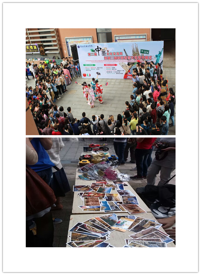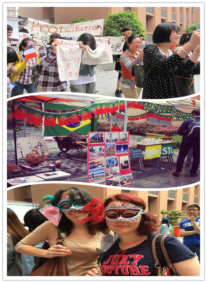 在风情秀上,各个专业的同学从饮食、民族服饰、建筑特色、风俗习惯、民间游戏、戏剧电影、歌曲舞蹈等多个方面展现了所学语言国家的文化。日语专业的同学现场制作了日本寿司和抹茶,并提供了日本清酒供来宾品尝;法语专业则着重展示了法国电影文化及法国服饰,并在活动现场模拟了一场为争取“自由和权利”的“示威游行”,展现了法兰西民族的人文精神。西班牙语专业展位的特色是西班牙的美食售卖,女生们穿着西班牙传统的宫廷服饰更显婀娜多姿;穆斯林的交往礼仪、阿拉伯语寓言故事以及水烟现场试抽等环节,让参观者对阿拉伯语专业的展位留下深刻印象;意大利语专业的同学则把意面的制作搬到了现场,亚平宁半岛深厚的足球文化吸引了大批男生关注;葡式蛋挞、葡式瓷片、南欧风情的建筑则集中展示了葡萄牙这个伊比利亚半岛南部国家的风情。