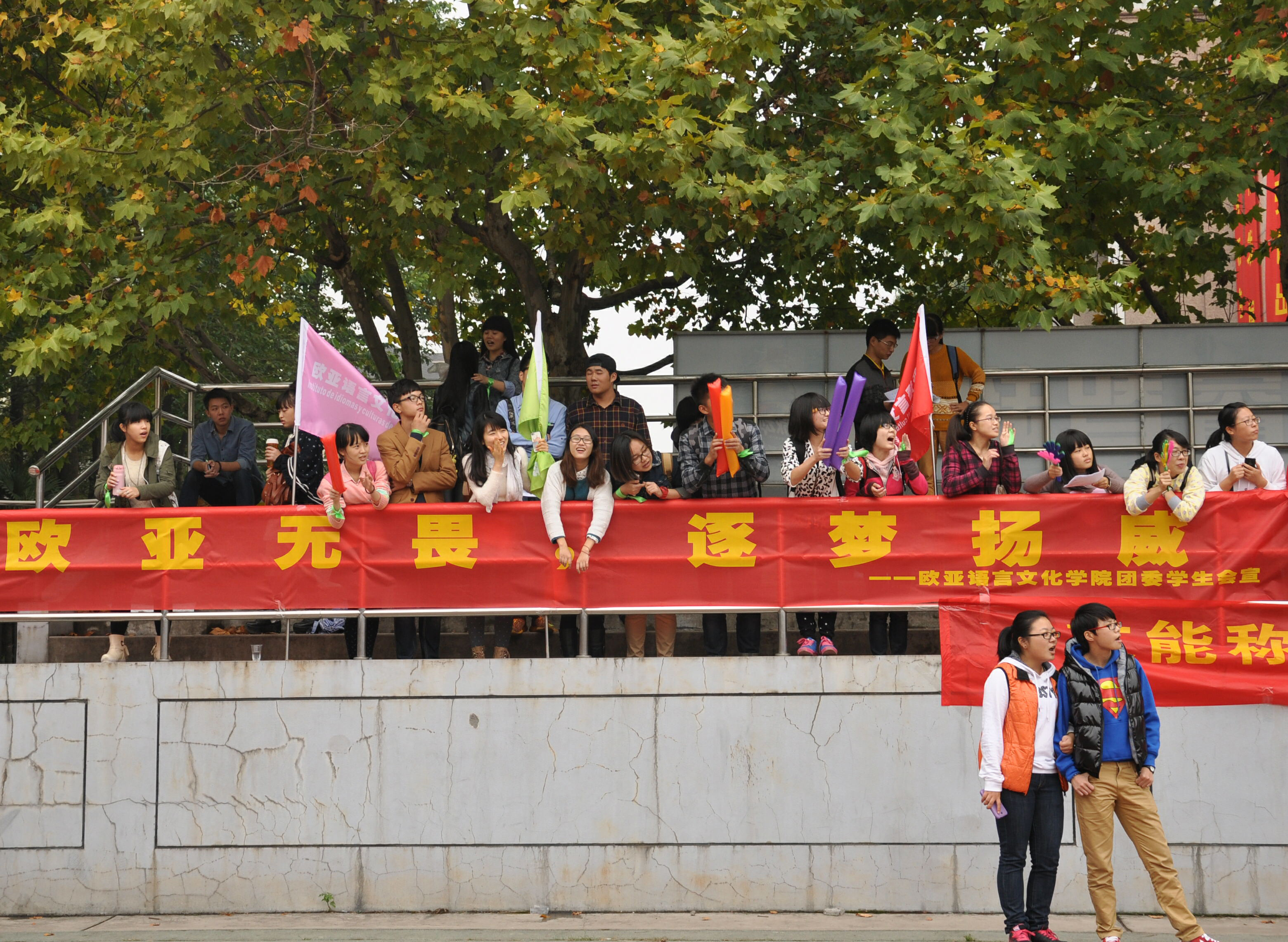 健儿摇旗呐喊。团委组织部同学为所有参与运动会的色漫网