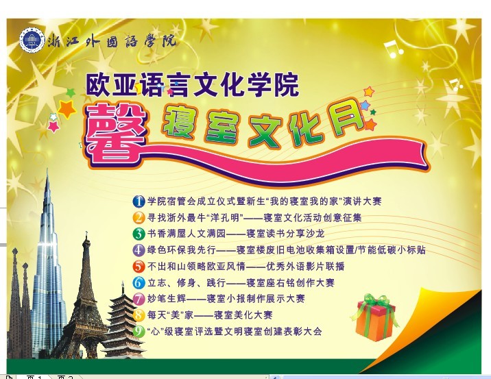 寝室文化是大学生活中不可缺少的一部分,它给予大学生的是一份感情凝聚的升华,它为大学生活增添了绚烂的一笔。一个温馨、富有特色的寝室将为大学生每天的学习生活带来好的心情,寝室不仅是休息的地方,它更是大学生一起学习交流、共同进步的“家”。在这里,它伴随着大学生的成长,同样也需要一份精神上的洗礼。就这样,欧亚学院“馨”寝室文化月拉开了序幕,演绎一场精彩的盛宴。