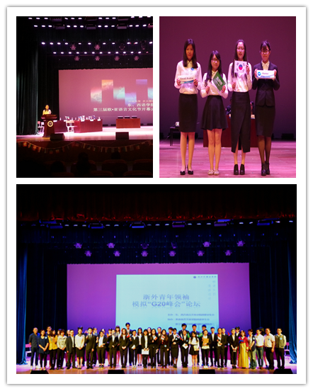 副院长马卫红、党总支副书记周明宝、院长助理吴桐出席开幕式,校党委组织部、国际学院相关老师,东、西语学院的各系主任、专业课老师、八语种学生社团的各指导老师,各学院辅导员老师,以及来自全校十余种语言的数百名学生参加了开幕式和论坛活动。