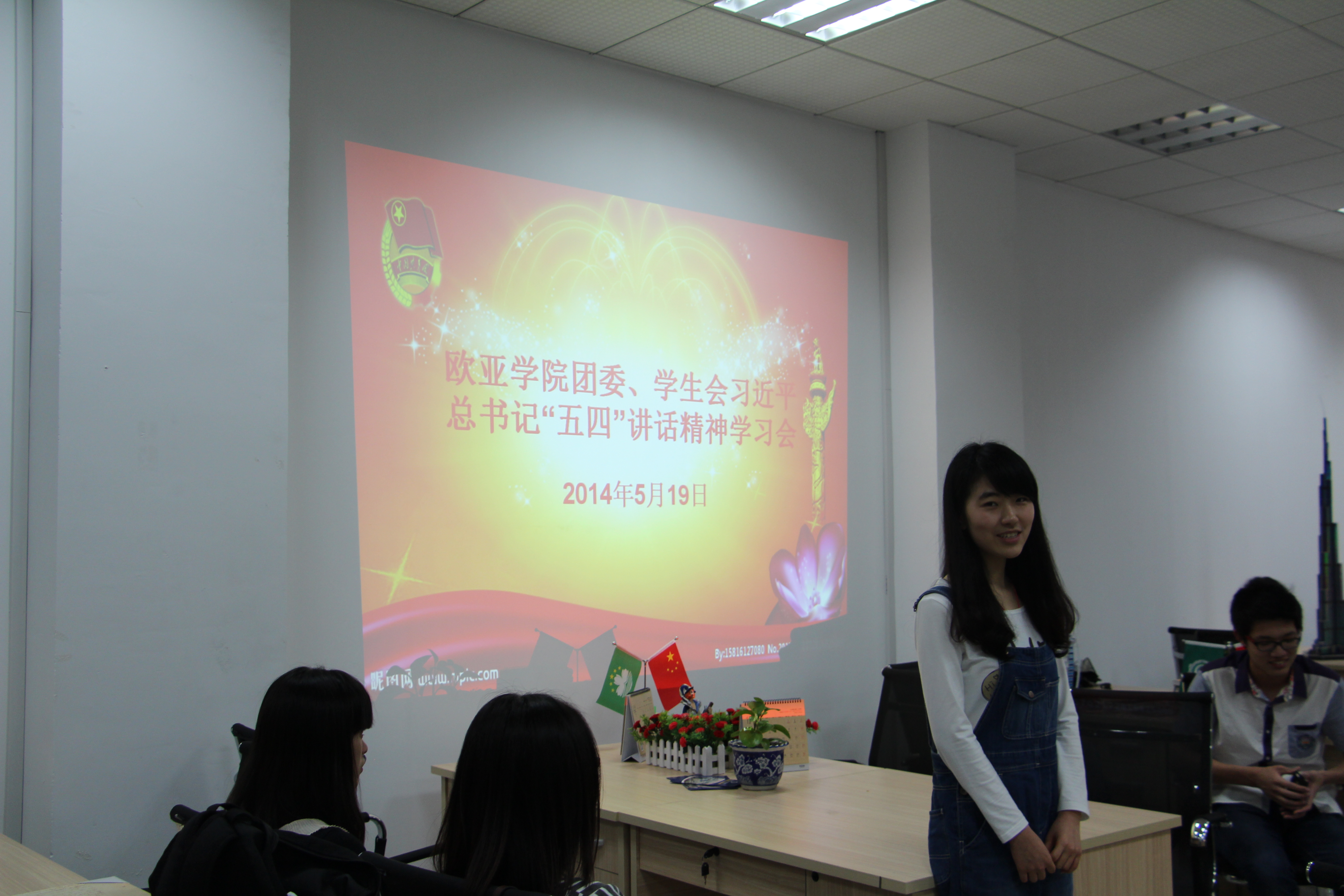 5月19号下午,欧亚学院团委、学生会在艺术楼B208召开习近平总书记“五四”讲话精神学习会。
