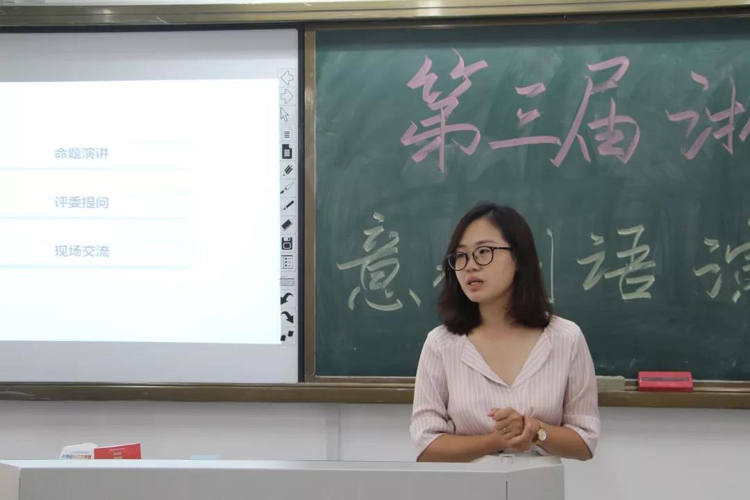 意大利语系系主任姚轶苒向在座的评委老师、参赛选手以及观赛学生介绍了此次比赛的参赛选手以及比赛的流程规则。