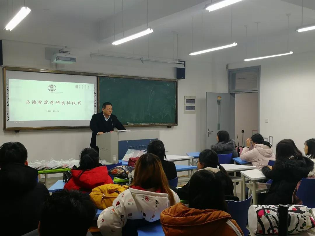12月20日,在全国硕士研究生统一招生考试来临之际,西语学院领导班子为即将赴考的36名学子送温暖,举办了出征仪式。