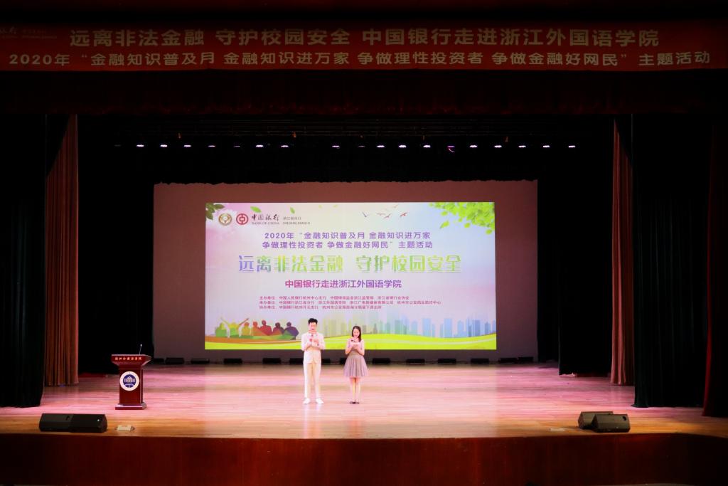 中国银行杭州开元涌金支行行长华华女士结合学生群体金融消费特点,从个人征信知识普及、个人信息保护、支付安全宣传三方面展开,分享了发生在身边的真实案例,指出个人征信是人的一张经济身份证,提醒同学们珍惜个人征信,保护好个人信息。她还特别提到,对于我校今后将会出国的外语学生来说,如何防止境外信用卡盗刷尤为重要。