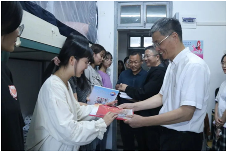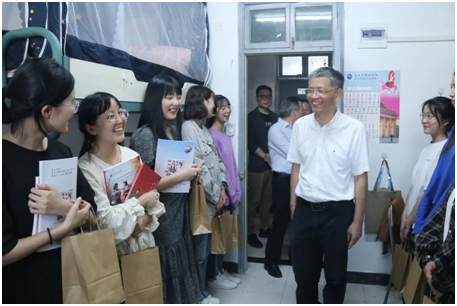 10月9日,为更好地了解新生入学报到情况,校党委书记宣勇、校长洪岗一行在西语学院相关负责人的陪同下走访西语学院迎新现场,为新生们带来关怀和温暖。
