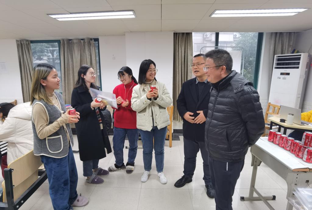 考研学子暖心护航活动是西语学院幸福工程建设进一步的深化和延续,本学期以来西语学院为考研学子们提供了一系列暖心服务。学院组织了专场师生考研座谈会,邀请副校长柴改英为与同学们一起畅谈“考研那些事儿”。在毕业生寝室楼专门设立考研自习室,完善桌椅、书柜、空调等硬件设备,保障大家有更好的备考环境。学生备考期间,学院党总支负责人暖心慰问考研学生,询问在备考过程中有什么困难与不便,还为同学们送上“考试文具礼包”,以及印有考研学生名字和加油语的专属可乐,预祝同学们考研成绩可喜“可乐”。