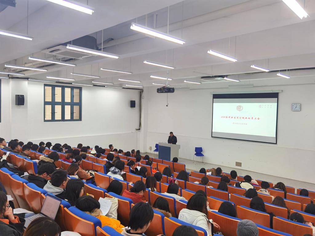 12月17日,西语学院在融D108举行了2021届毕业生实习就业动员大会,学院党总支书记张伟慷、副院长王忆停、副书记顾小明、各系系主任、毕业班班主任、教务秘书和辅导员,以及全体2021届毕业生参加了大会。会议由副院长王忆停主持。