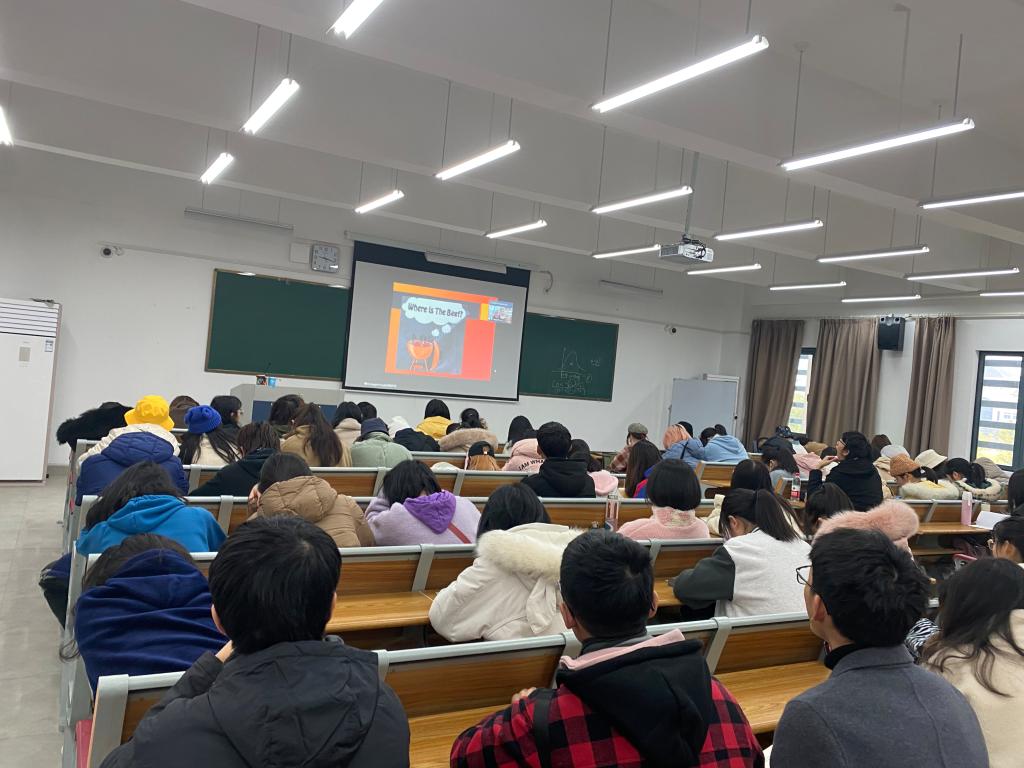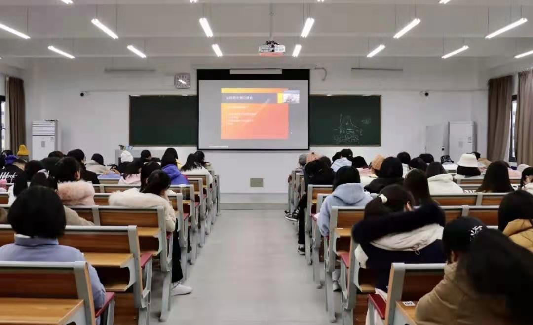组织学生在融D202集中观看学习专业译员洪淼的专题线上讲座——“如何成为合格的口译员”。