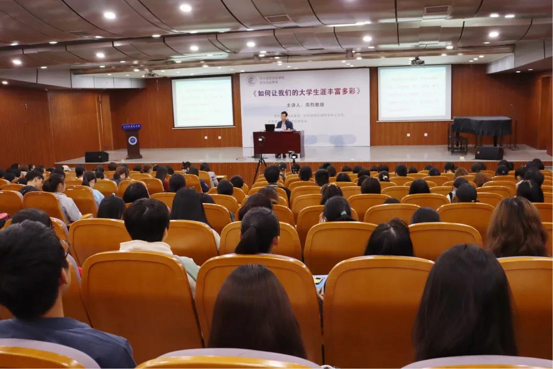 在讲座的开始,周教授便向大家抛出一个问题:“为什么要上大学?”。在听取了同学们的回答后,周教授援引了习近平总书记对大学生的希望:“肩负时代责任,高扬理想风帆,做有理想、有追求、有担当、有作为、有品质、有修养的’六有‘大学生”。