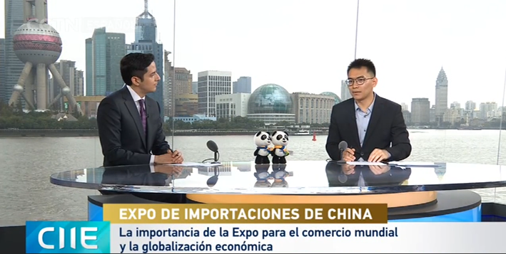 西班牙语系教师、拉丁美洲研究所研究员戚钟辰受邀做客中国国际电视台CGTN西班牙语频道上海直播间,就第四届中国国际进口博览会接受采访。