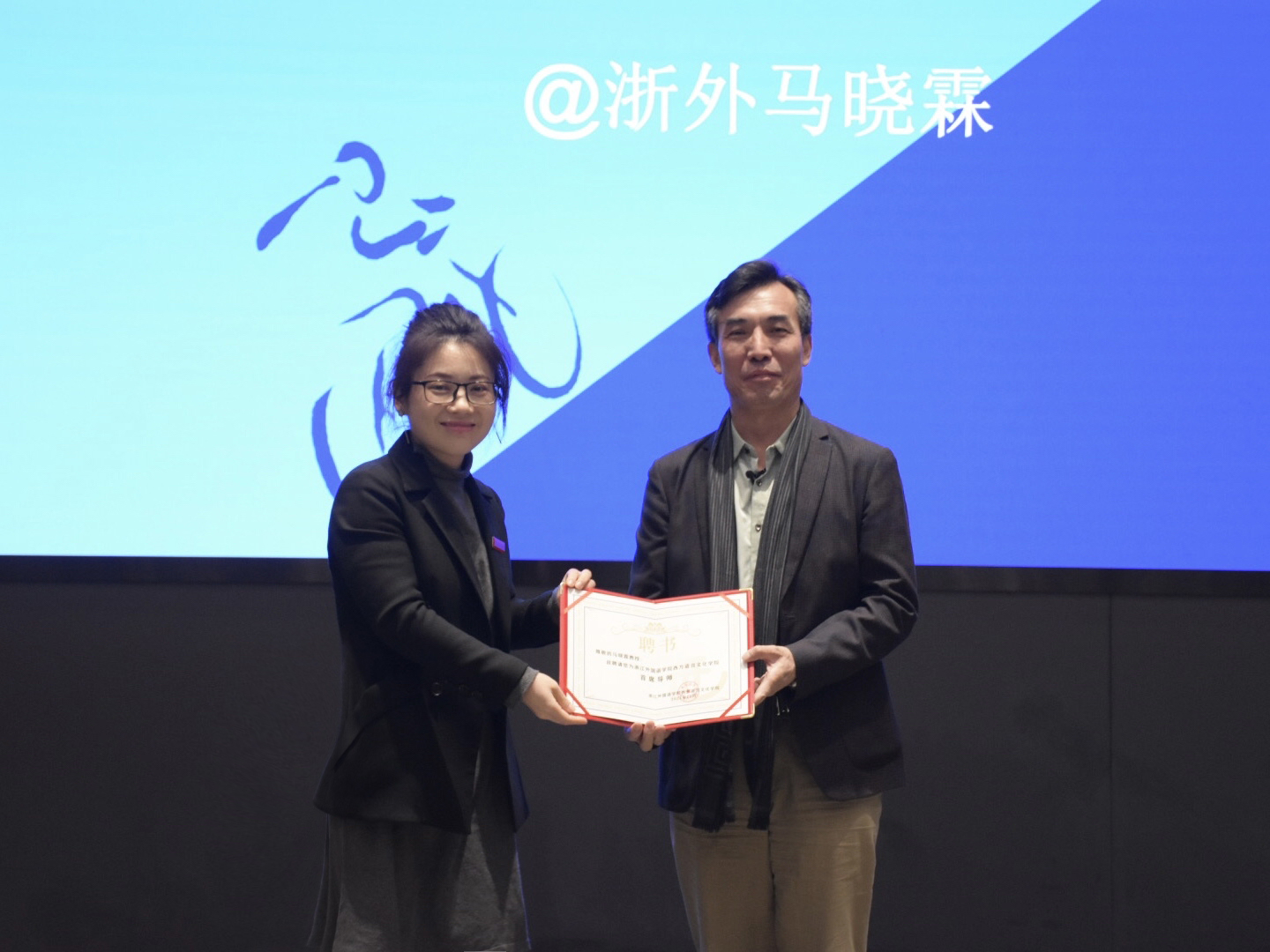首席导师。学院党总支书记毕莹为马晓霖教授颁发聘书,并代表学院对马晓霖教授一直以来对学院工作和师生成长的关心、爱护和引领表示感谢!学院班子全体成员、学院师生代表等共同见证仪式。