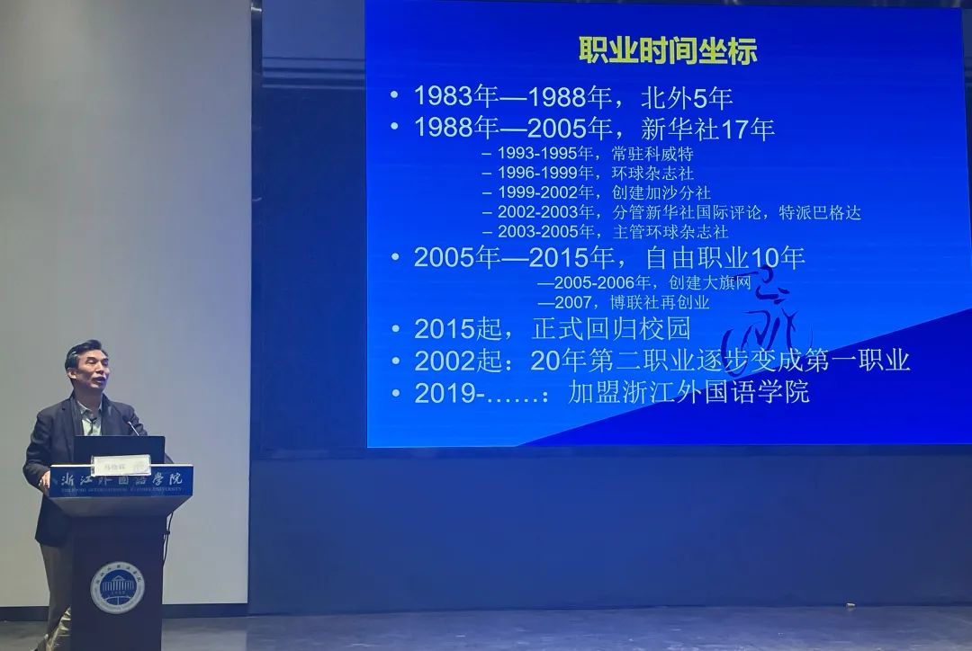 马晓霖教授首先回顾了自己的学生生涯,从高中到大学,从西北农村到首都北京,马教授深感高考改变了命运,即便求学之路并不平坦,但仍坚信努力必有回报,也正是通过自己不懈的努力后所取得的优异成绩,于1988年毕业后进入新华社,开启了一段新的职业生涯。