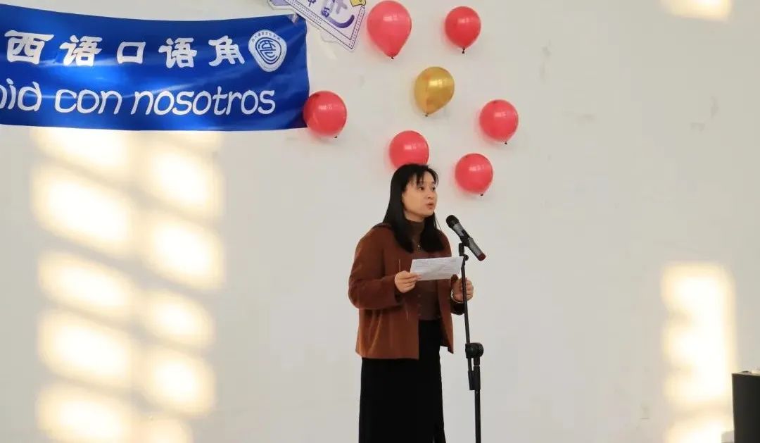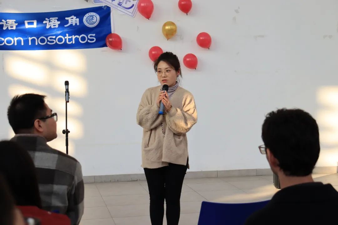 活动由西班牙语系系主任甘甜老师主持,她表示本系列活动的初衷是让大家讲出西班牙语,并且希望大家能够在讲西语的过程中理解文化内涵。接着,方盼副书记以“感谢、守护、共成长”的主题,表达了领导班子对西班牙语系以及口语角的祝福和大力支持。之后,学生代表张力骁上台发言,他说到,自己一直以来都希望有一个能够锻炼西语交流能力的平台如今愿望成真,他表示十分激动和开心。最后,毕莹书记宣布西语口语角正式成立。