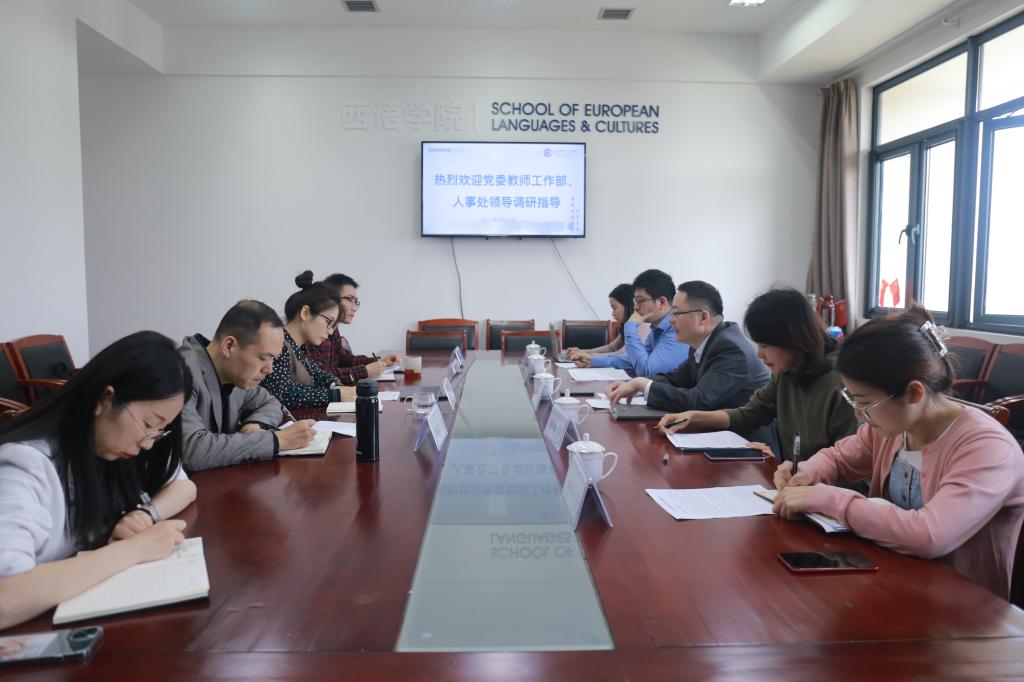4月21日上午,人事处处长陈利强、副处长胡小敏、副处长张帆等一行5人来院调研。调研会上双方围绕学院人才引进、师资队伍、绩效改革、年度工作目标、岗位管理等工作展开交流。西语学院党总支书记毕莹、副院长王忆停、张禄彭出席调研会。