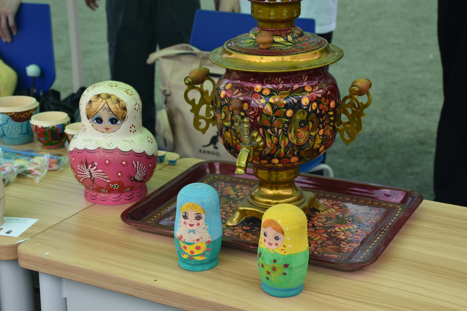 俄罗斯摊位提供了大列巴和套娃彩绘这两样俄罗斯的特产,列巴的香和套娃的美让大家大开眼界;