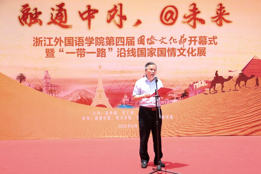 赵文波在开幕致辞中指出,语言通,则文化通,文化通,则民心相通。此次国际文化节是我们作为外语类高校的新使命,是彰显浙外国际化的一张金名片,是体验浙外多元、高雅、现代校园文化的特色品牌,是中外学生文化交流的盛会。通过此次活动,可以拓展师生国际视野,增强师生国际理解,提高跨文化交流能力,开辟中国文化走出去的窗口,打开外国优秀文化走进来的窗口,为中外青年学子搭建一个互学互鉴、友好交流的平台。