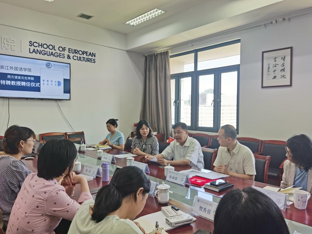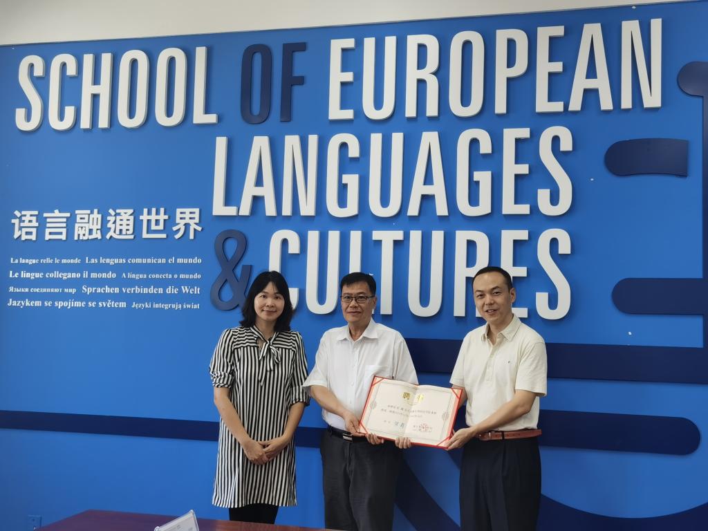 6月28日上午,我校举办兼职教授聘任仪式,聘任武汉大学博士生导师、教育部国别和区域重点培育基地法国研究中心主任王战教授为我校兼职教授。人事处副处长胡小敏,学院副院长张禄彭出席仪式,法语系全体教师和相关系室教师代表共同参加仪式。