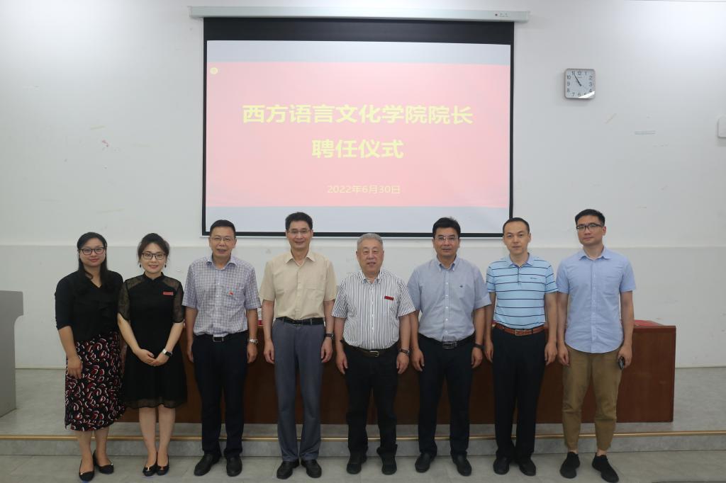 6月30日,我校举行西方语言文化学院院长聘任仪式,范捷平教授被聘为学院院长。校长洪岗,校党委副书记曹仁清,副校长、党委组织部、统战部部长徐勇,范捷平教授以及学院党总支书记毕莹、学院教职工60余人参加仪式。仪式由徐勇主持。