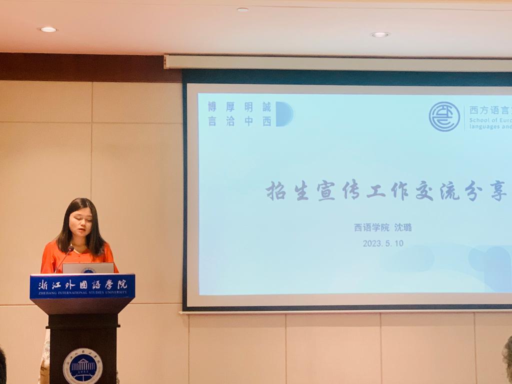 会上,学校对2022年校招生工作先进集体和个人进行了表彰。色漫网 葡萄牙系主任沈璐老师、团委书记翁佳薇老师荣获2022年“招生工作先进个人”称号;沈璐老师作为先进个人代表做专题发言。