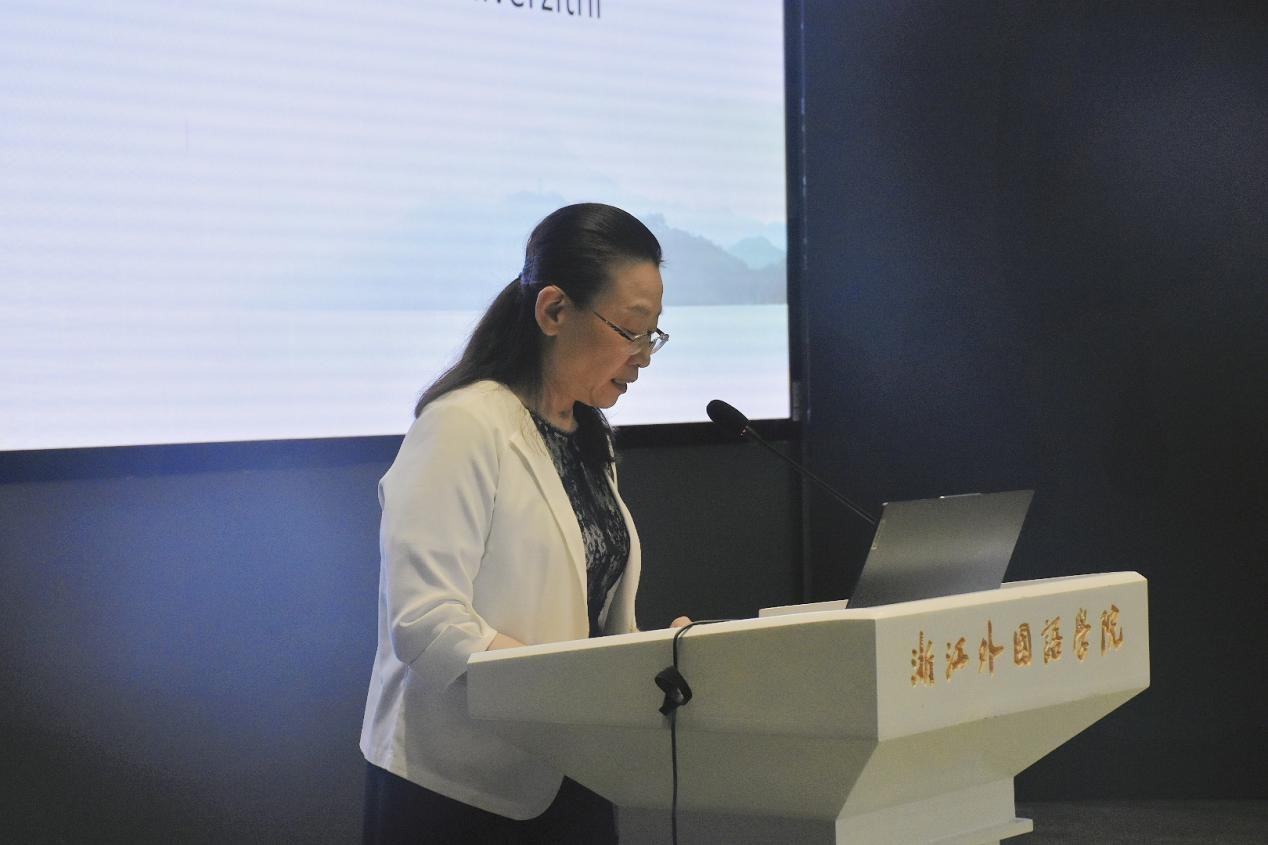 柴改英简要介绍了我校捷克语专业近年来的建设情况,并回顾了2021年首届比赛的情景,期待通过比赛,各校捷克语专业的同学们能够充分展示风采,各兄弟院校捷克语专业之间能够实现更好的联络交流。