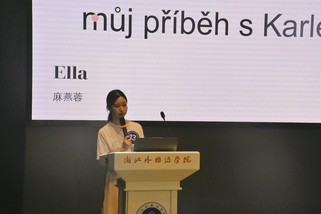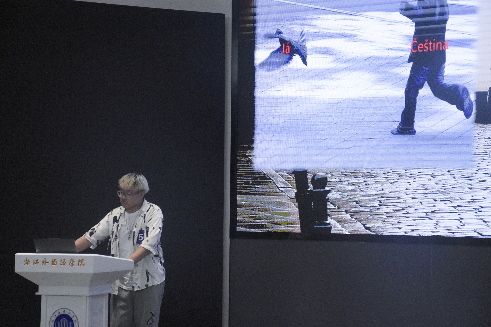 来自我校的吴若由同学,在演讲中将自己的语言学习经历娓娓道来。捷克电影和捷克语词典都是她学习路上的好伙伴,而她对语言的兴趣则让她的学习之旅充满了乐趣。她发现捷克语里一些词能在其他语言中找到“亲戚”,于是惊喜地一边学习捷克语一边回忆自己认识的其他外语词,不同语言的线索在她脑海里交织,构成了她自己独特的“语言大厦”。如今的她对未来的学习之旅充满了期待:“在我看来,经过长时间的学习,这些有趣的发现在逐渐成为理所当然的事情。这些曾经让我感到惊讶或兴奋的小发现并不像我想象的那么特别。但我在学习的过程中感到很开心,这就足够了。我将来可能会有更多的新发现,但谁知道呢?我知道我还有很长的路要走。”