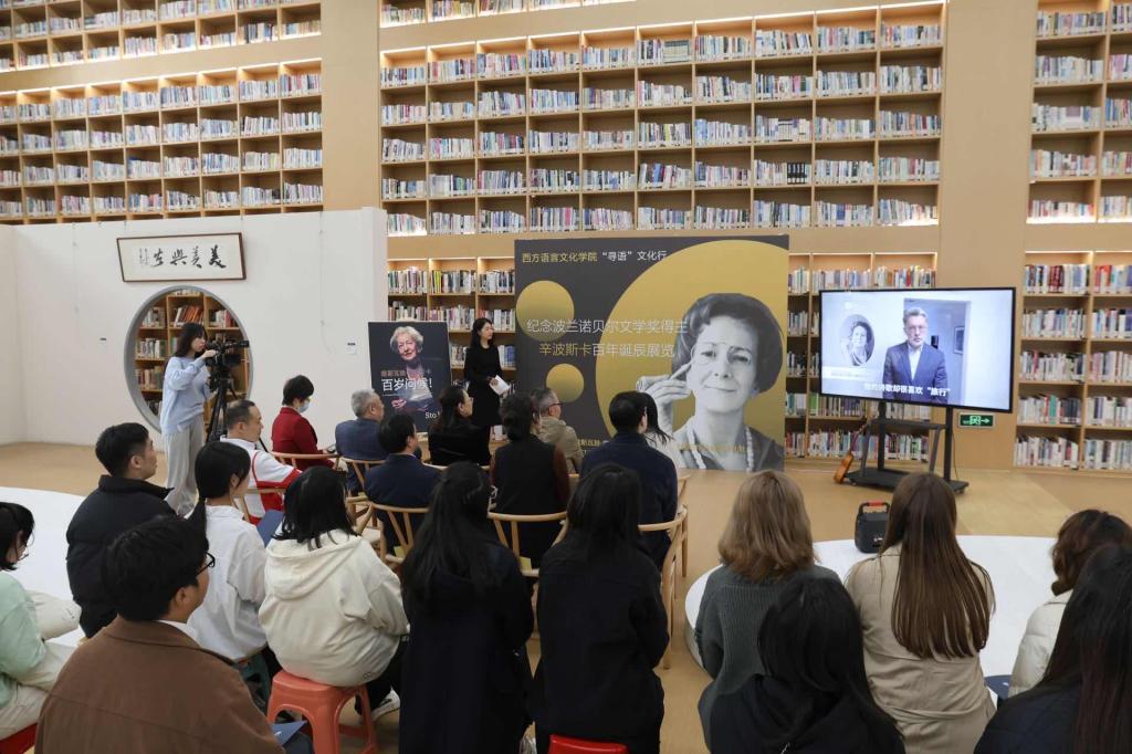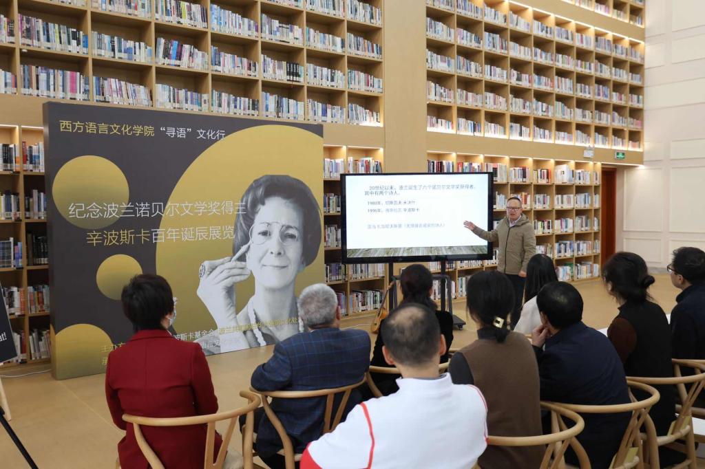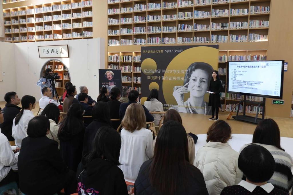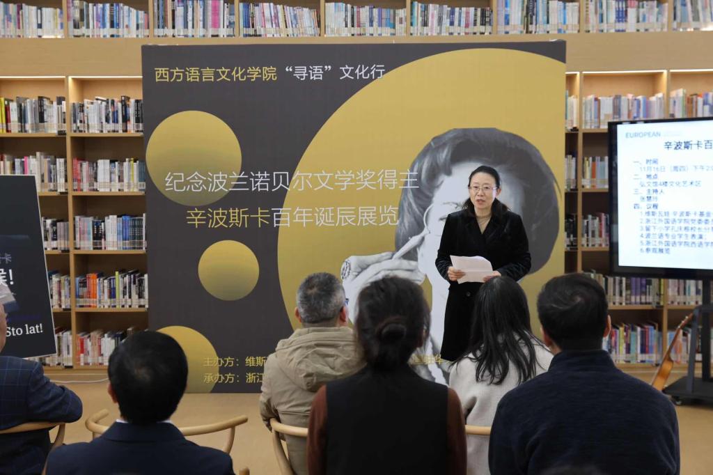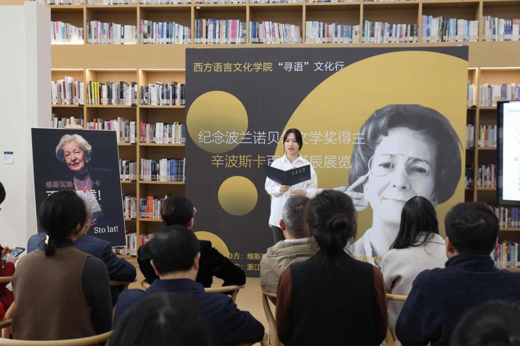 此次展览由维斯瓦娃·辛波斯卡基金会出品,波兰共和国驻华大使馆文化处全额资助。展览以辛波斯卡百年诞辰为主题,通过丰富的照片、手稿、剪报、诗作片段等珍贵资料呈现她的一生,向这位伟大的波兰诗人致敬。展览将于浙外弘文馆四楼文化艺术区展出至2023年12月15日,展区同时陈列了浙外弘文馆馆藏的辛波斯卡作品中译本图书供广大师生借阅。