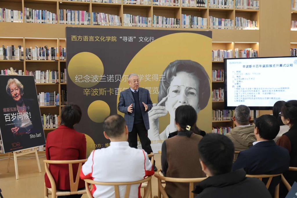 柴改英教授在致辞中表示,辛波斯卡是一位举世闻名的波兰诗人,被誉为“诗界莫扎特”。她的诗歌深深触动了全世界无数读者的心灵。希望此次展览能成为中波文化融通的平台,进一步深化中波文明交流互鉴,碰撞和集聚更多智慧;同时,通过跨文化视野“双融通”,进一步发挥文化育人作用,培养学生国际理解力与跨文化交际能力,推动师生“厚植家国情怀,开阔国际视野”。