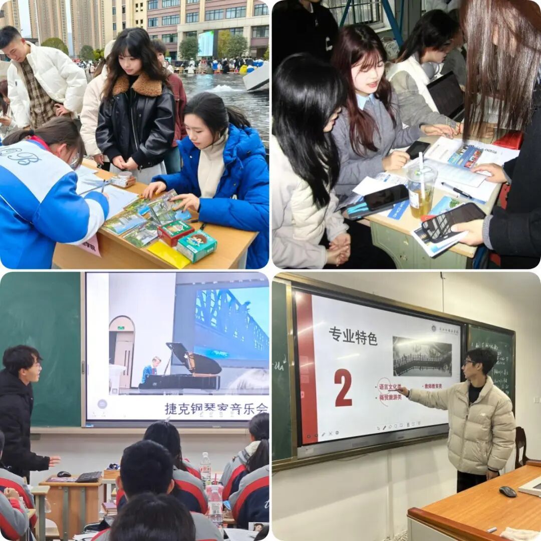 24俄语2班黄惠、24葡语1班梅益铭、24葡语1班应义轩、24意语中外2班孙丰安分别带队赴平阳县浙鳌高级中学、泰顺中学、杭州富阳二中、丽水中学,开展“浙外学子感恩行”招生宣传活动。