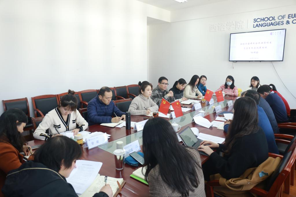 会上,西班牙语系系主任甘甜汇报了西班牙语中外合作办学项目的前期师生问卷调查情况,介绍了项目的人才培养方案和学生学习现状,表达了学生的需求和专业目前在人才培养过程中面临的问题。
